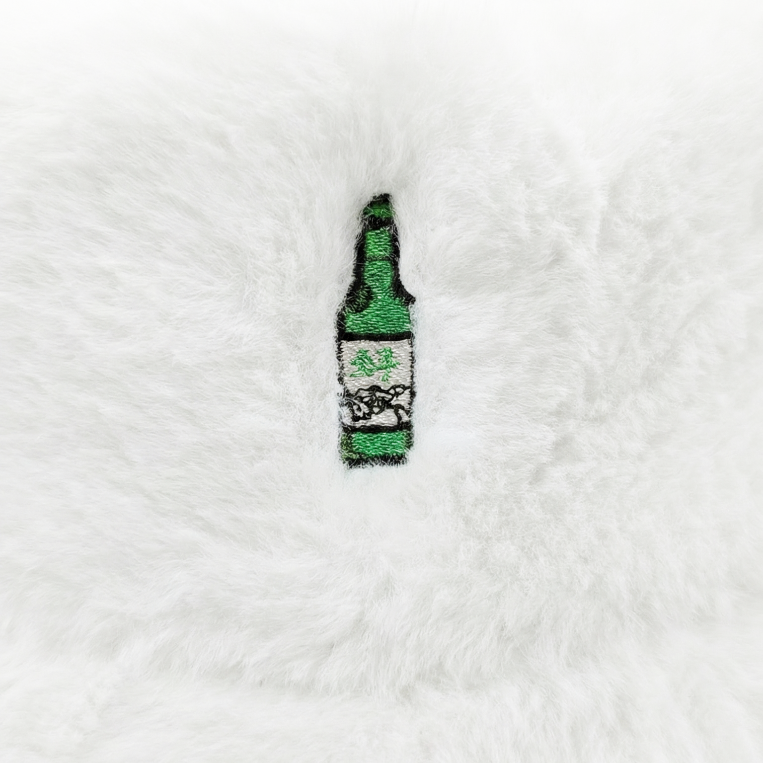 Stay toasty responsibly. This fuzzy texture keeps your ears warm, while the cheeky Soju bottle embroidery keeps the spirits high. The perfect accessory for chilly nights waiting in line for K-BBQ or late-night karaoke runs.